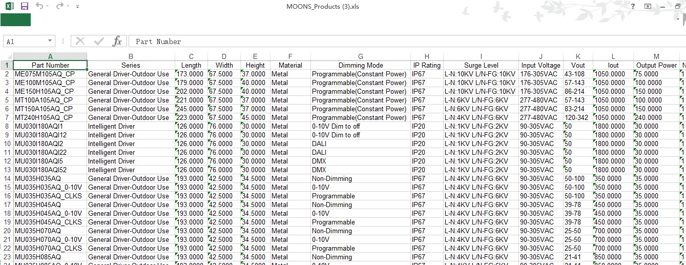 You can export the list of MOONS¡¯ LED driver before searching or after searching.
