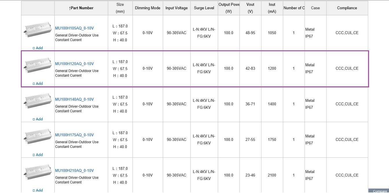 You also can access to MU100H120AQ_0-10V to gain the detailed information of this LED driver. You can gain the related certificate and data sheet.