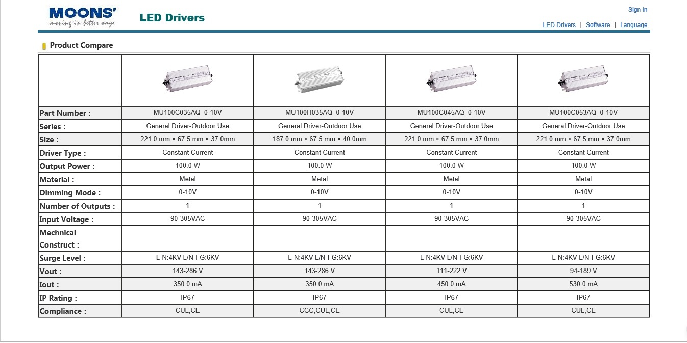 Sometimes, you may be confused with the similar data of MOONS¡¯ LED driver. You can use this function to compare the related MOONS¡¯ LED driver.